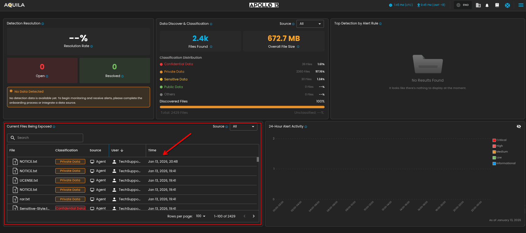 Data Security > Data Loss Prevention (DLP) > Dashboard
