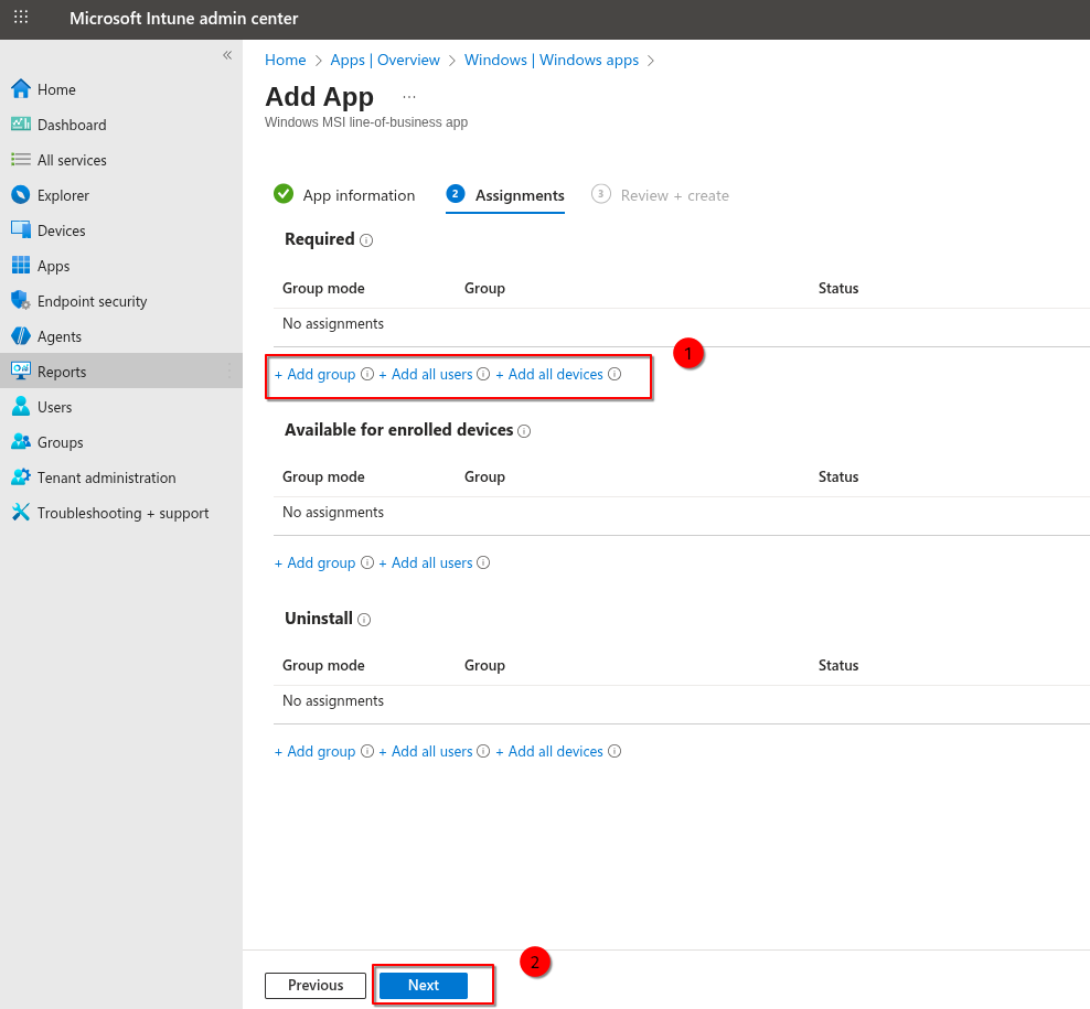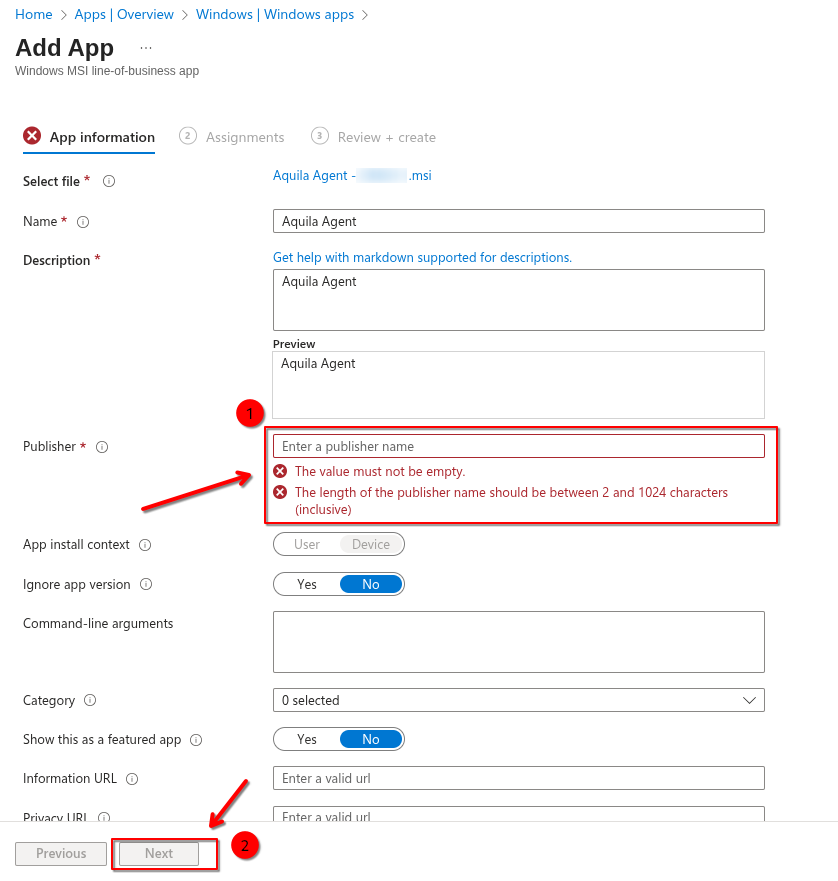 Intune will automatically extract MSI metadata (Product Code, Version, Publisher).