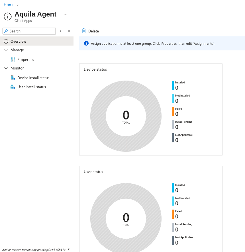 Deploying the AQUILA Agent via Microsoft Intune using an MSI installer provides a reliable, scalable, and secure method for enterprise-wide endpoint onboarding. This approach minimizes manual effort, improves deployment consistency, and ensures endpoints are quickly integrated into SOC monitoring workflows.