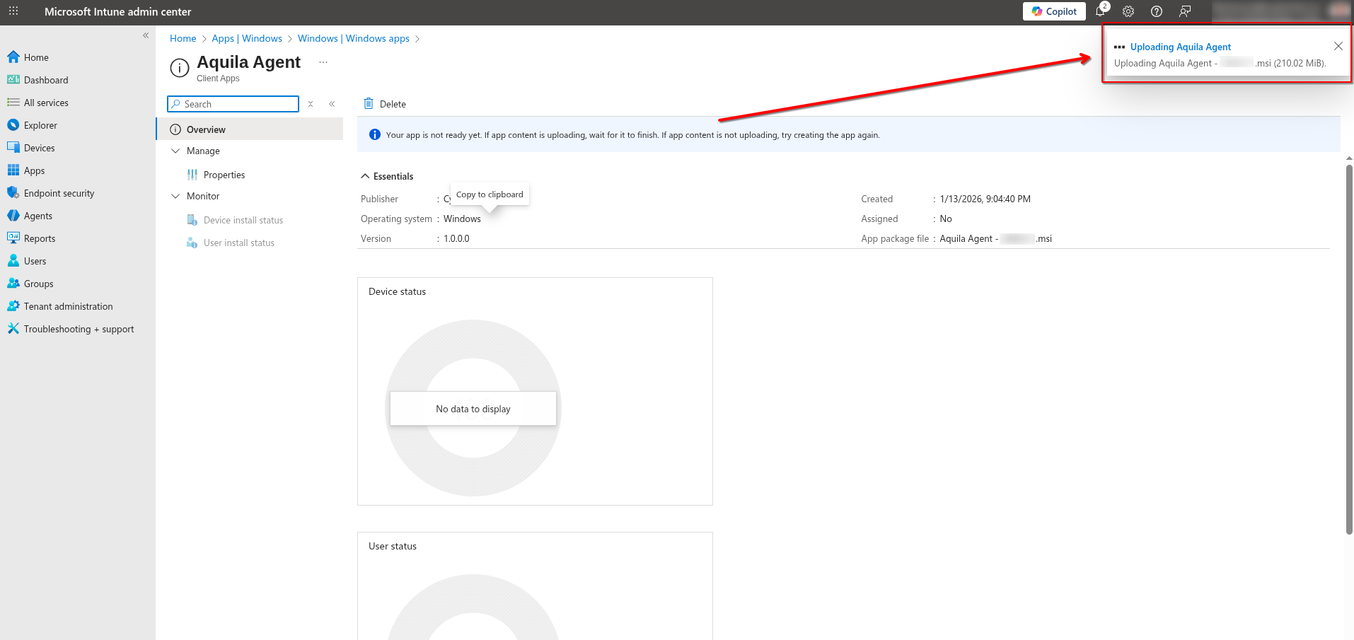 This document provides a step-by-step guide for deploying the AQUILA Agent across Windows endpoints using Microsoft Intune with an MSI installer. The goal of this deployment is to ensure consistent, secure, and scalable installation of the AQUILA Agent to support SOC monitoring, endpoint visibility, and response capabilities.