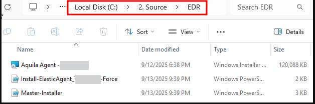 folderfolder. Click the path and copy. (e.g.,C:\Source\EDR). -