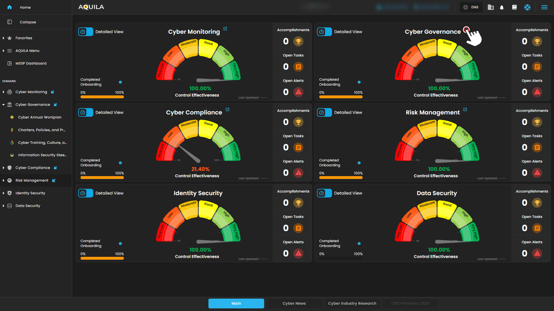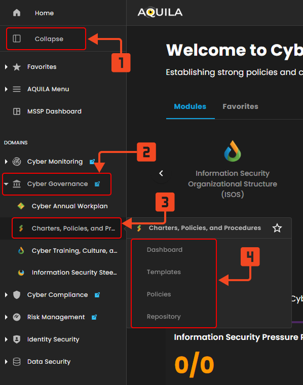 Step 4: Hover into leftmost panel to view all the Cyber Governance sections. This Process is applicable in all navigating into a Module.