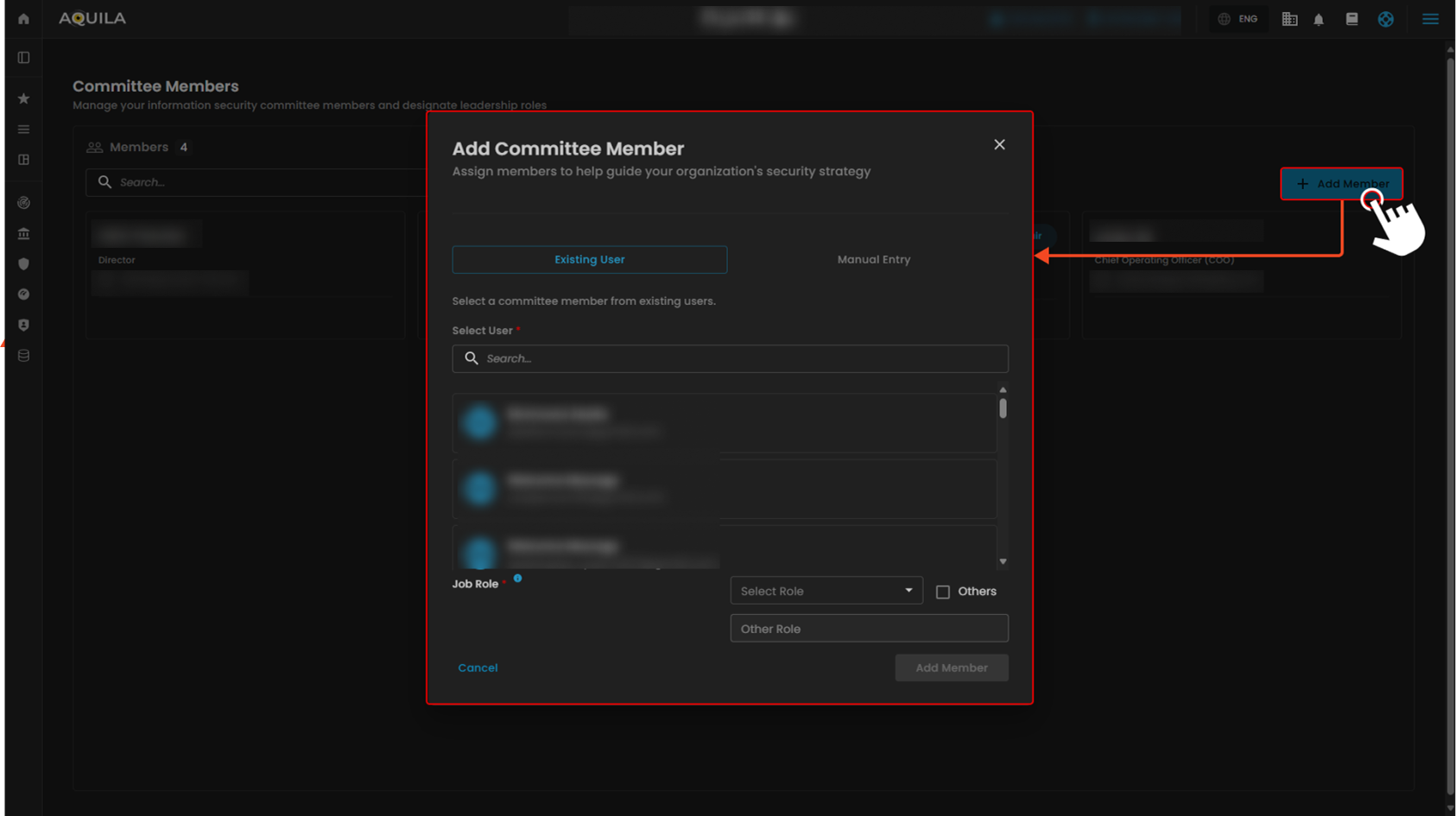 Figure 3 Cyber Governance - Committee Meetings / Add Member / Existing User