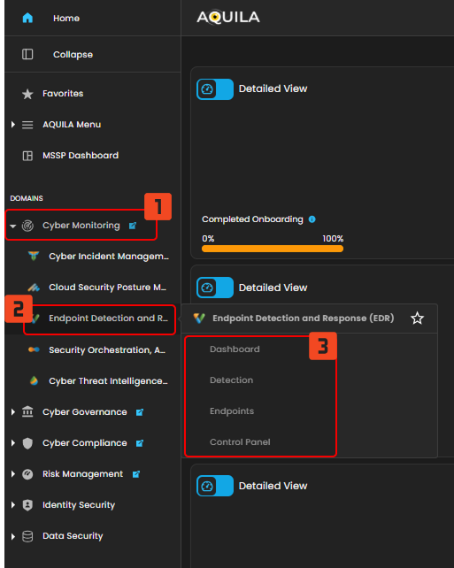 Step 4: Hover into leftmost panel to view all the EDR sections. This Process is applicable in all navigating into a Module.