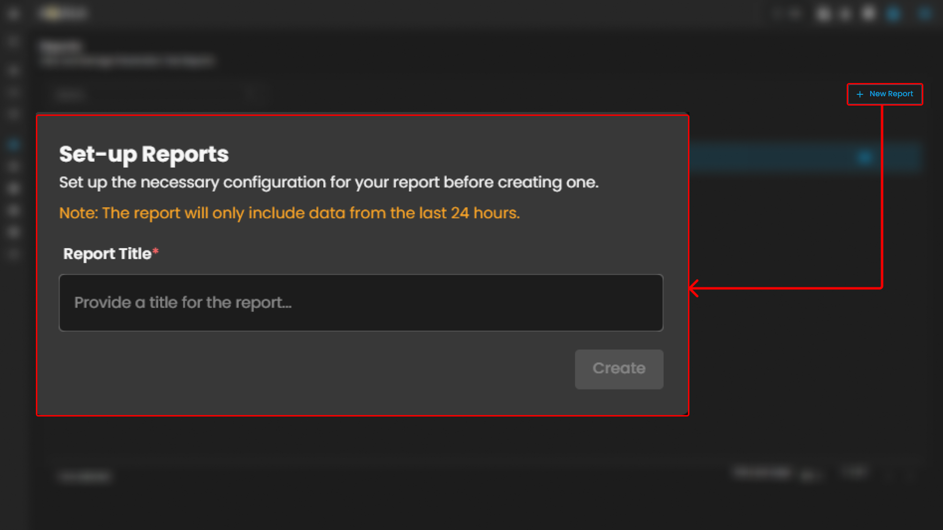 The user can add new reports by pressing the "+ New Report Button". After providing the title for the report, it will automatically generate a report.