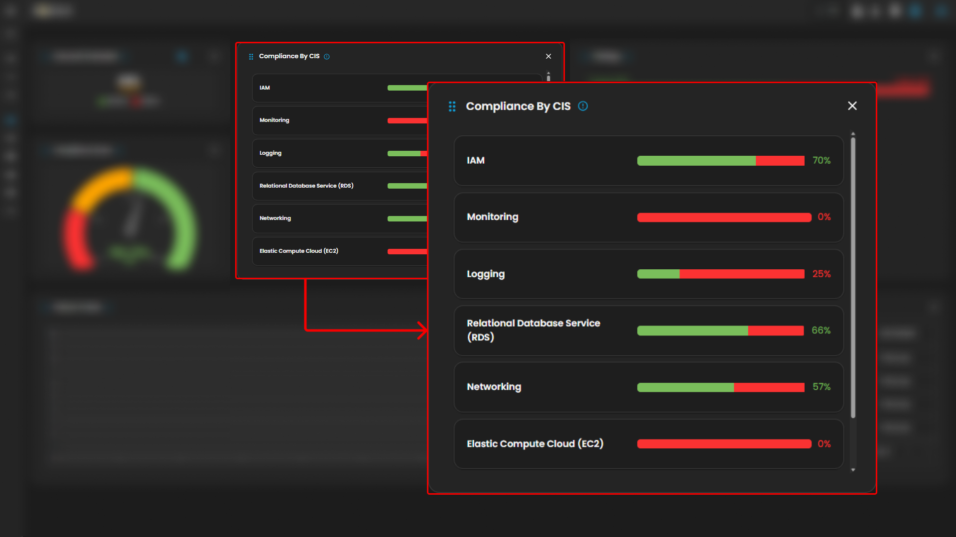 - This refers to the evaluation of cloud resources against the security guidelines and best practices defined by the CIS benchmarks. These benchmarks provide a set of controls and recommendations to secure cloud environments. Compliance by CIS helps organizations ensure their configurations align with industry standards for security.