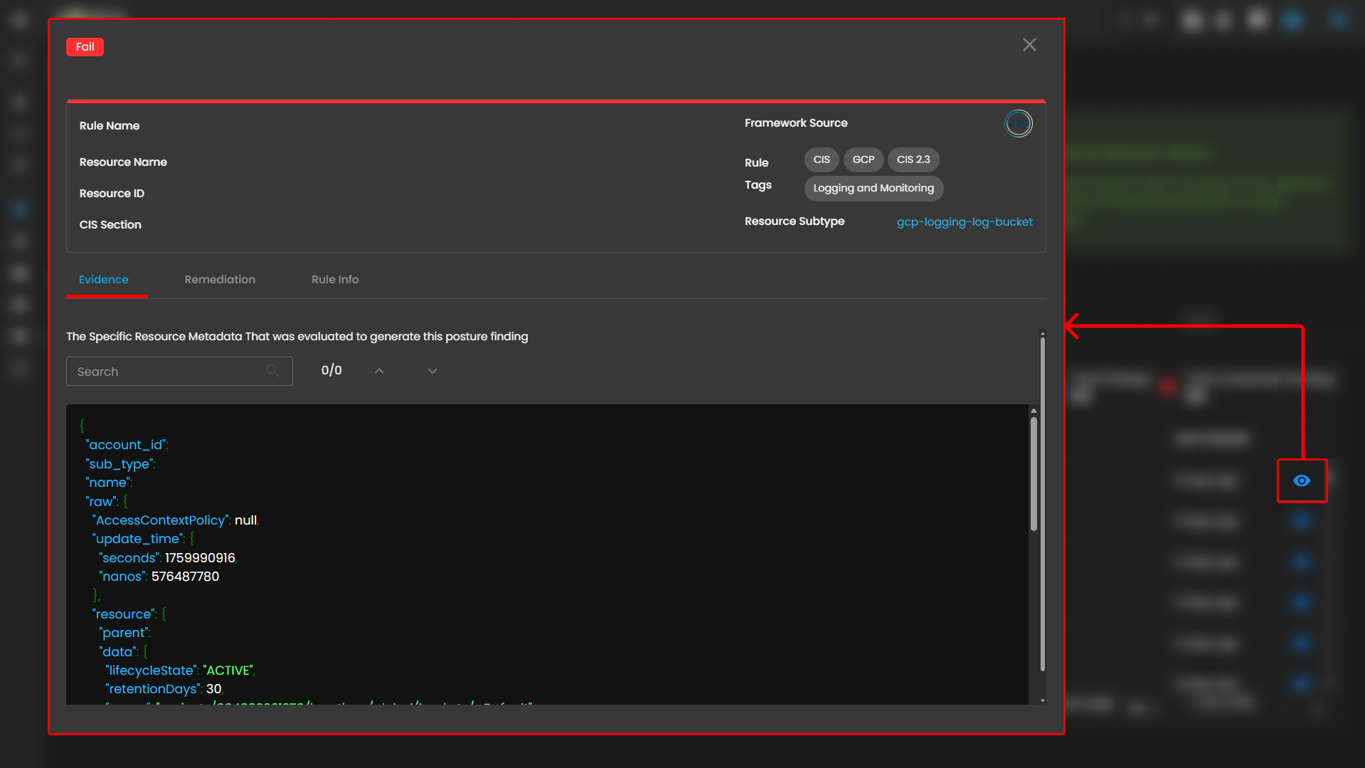 , it will show you all the details such as Evidence, Remediation and Rule Info.