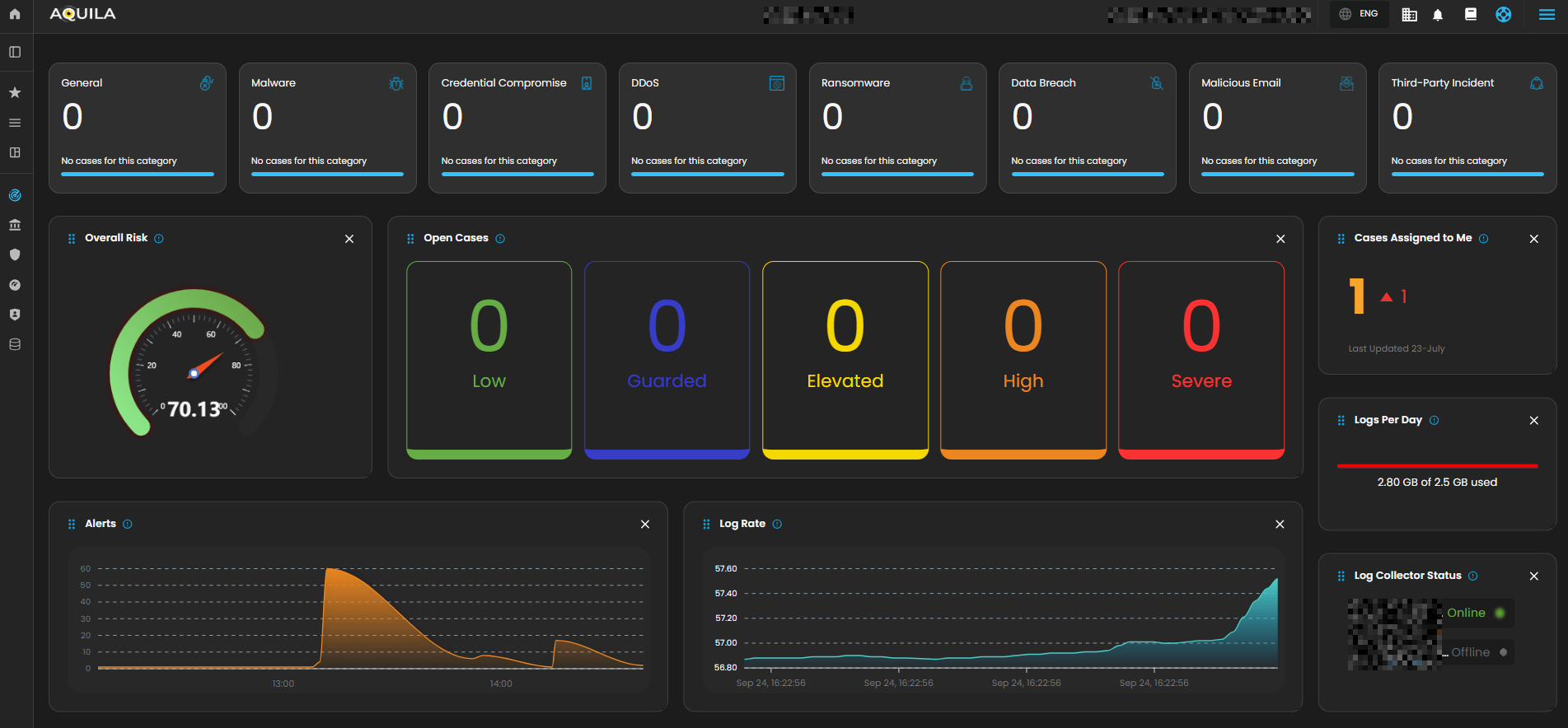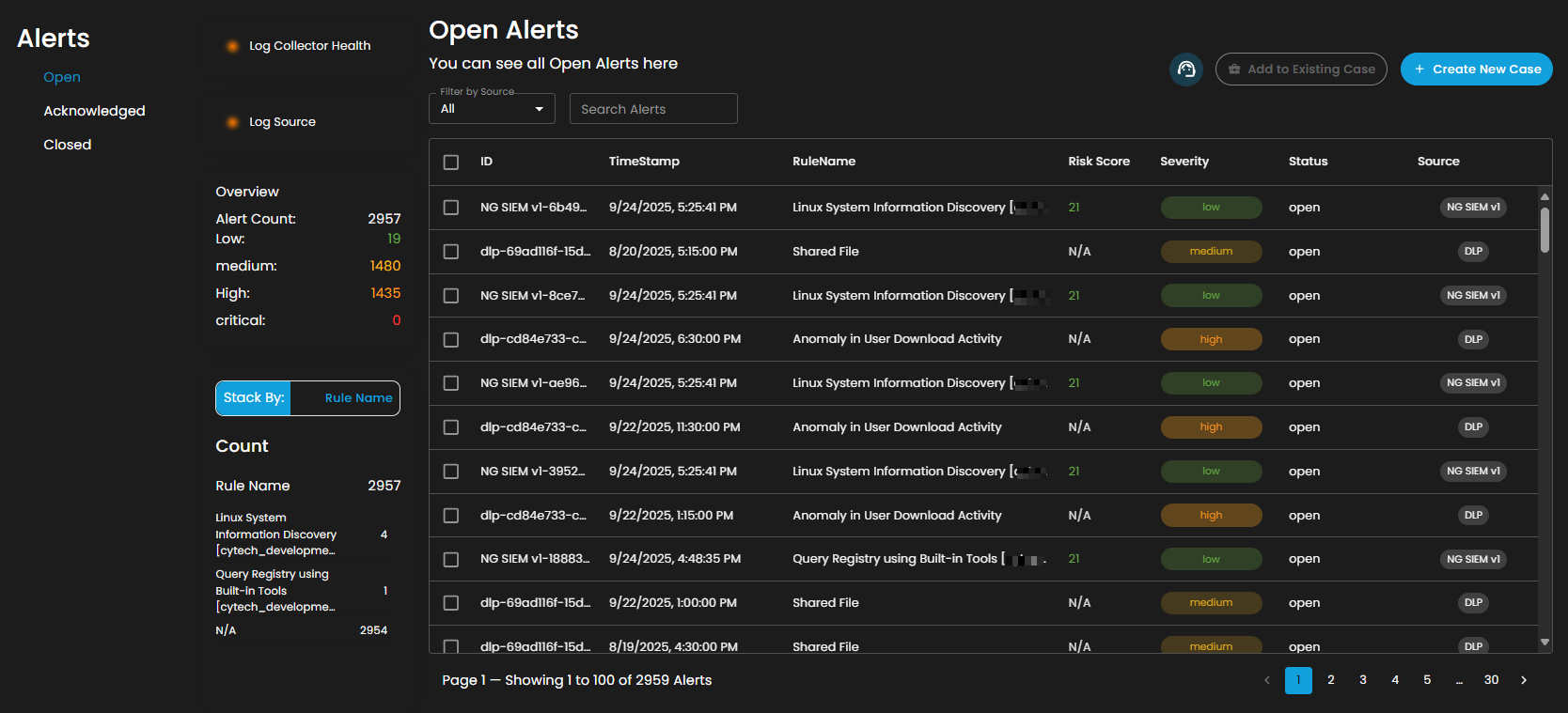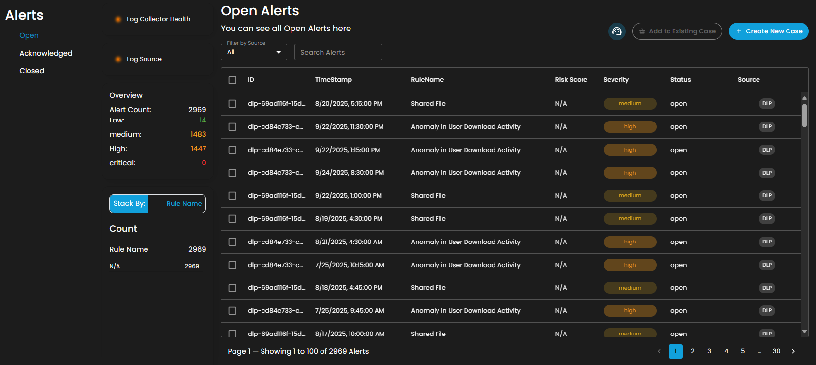 - Dashboard - Real-time view of alerts, cases, and overall security status.