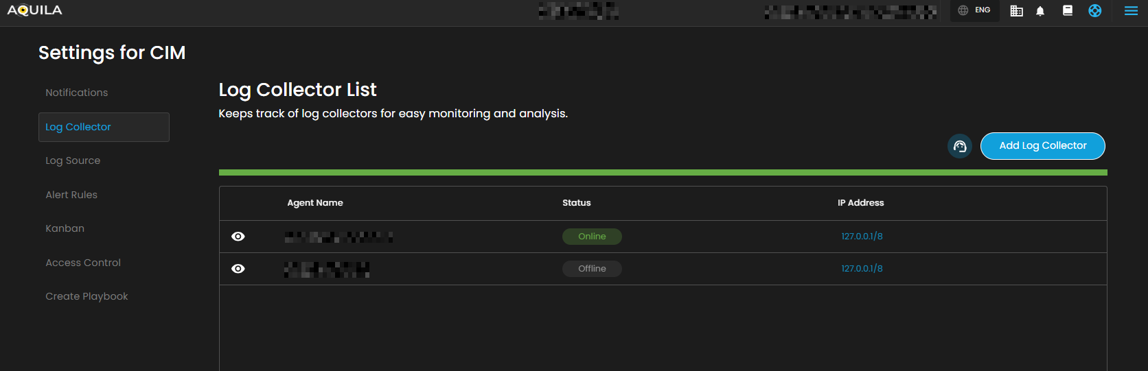 Indicates the current status of the log collector, ensuring that logs are being collected and monitored for any suspicious activity.