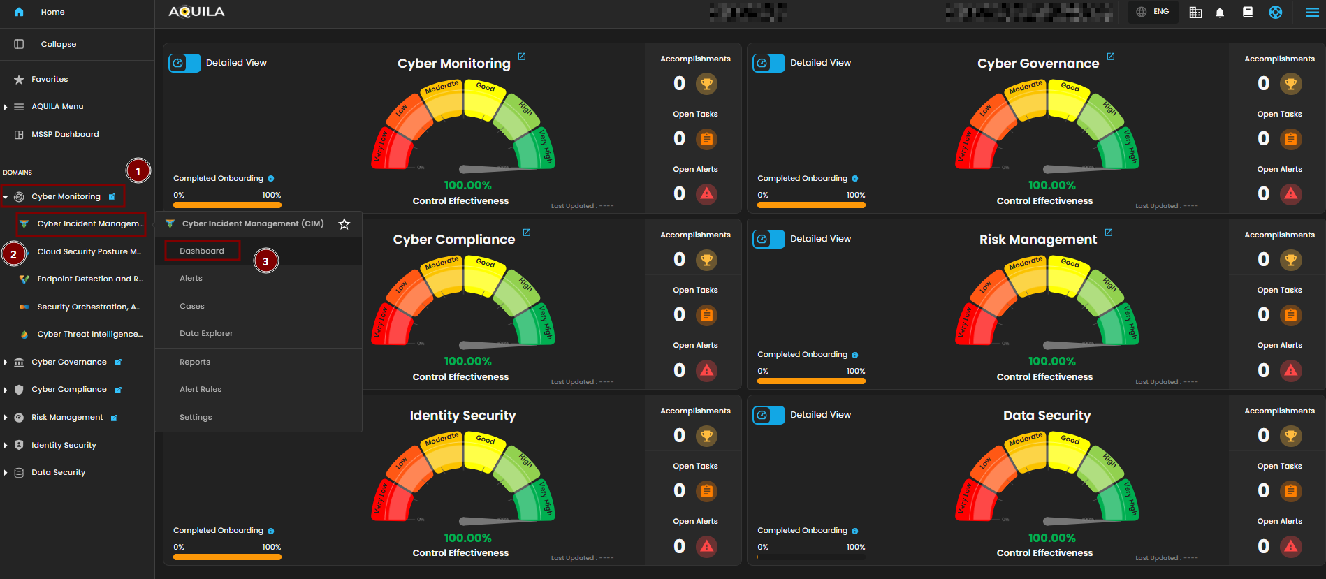 Step 2: In the left column click Cyber Monitoring -> Cyber Incident Management (CIM) -> Dashboard