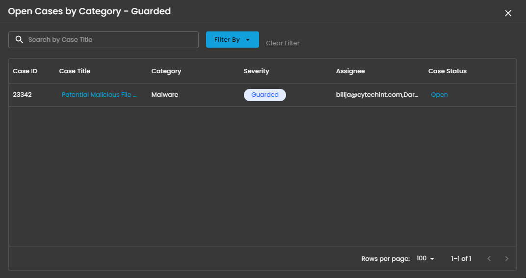 When you click on a category, you will see all the cases that fall under that severity level. For example, as shown in the image above, selecting the “Guarded Severity” category will display all cases labeled as guarded severity.