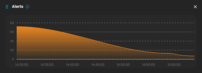 Display the trends of the detections generated by the system, highlighting potential security incidents that require immediate attention. Clicking on it will open up a small window that will show all the alerts that was recently triggered.