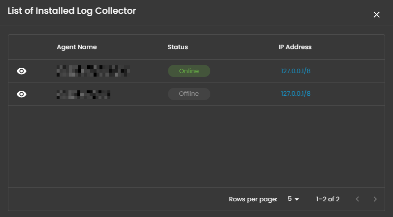 Click the eye icon next to the log collector name to go to the Log Collector List page.