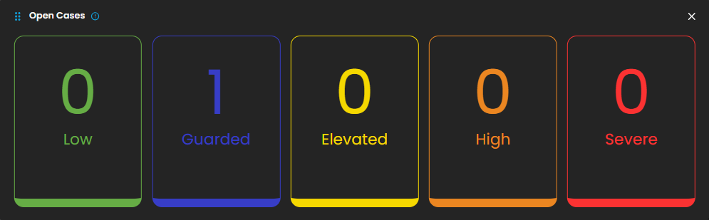 This panel displays and categorizes all cases within your environment that are currently open or in progress. It presents a structured view based on case categories, offering a clear summary of ongoing activity. This allows for efficient tracking, prioritization, and management of active investigations.