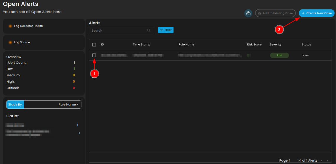 To create a case, you can opt to choose either to create a case from the Alerts Dashboard or the Case Management Dashboard.