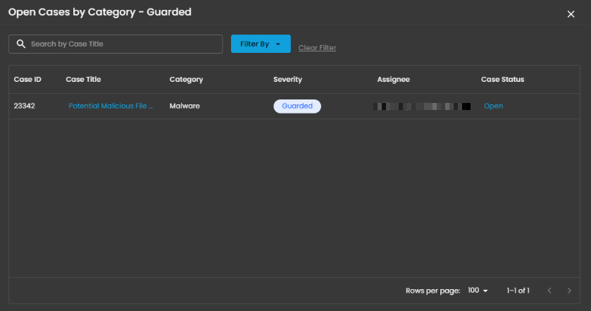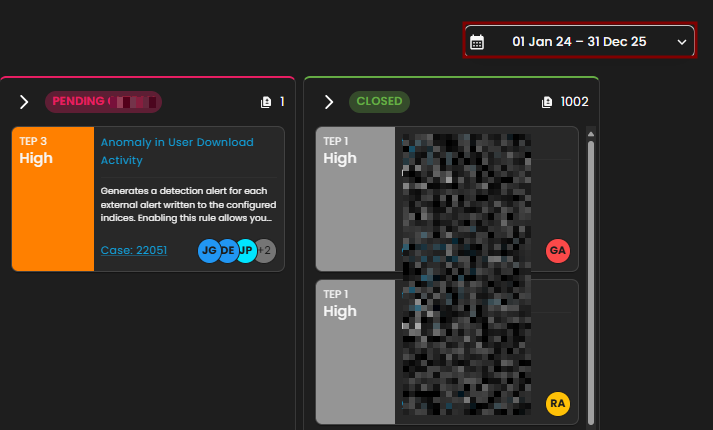 This panel displays and categorizes all cases within your environment that are currently open or in progress. It presents a structured view based on case categories, offering a clear summary of ongoing activity. This allows for efficient tracking, prioritization, and management of active investigations.