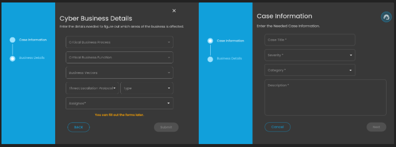 Doing so will show a modal where information is required to create a case for investigation