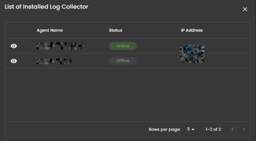 Click the eye icon next to the log collector name to go to the Log Collector List page.