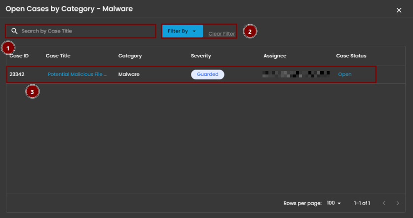 Shows the number of cyber incident cases specifically assigned to you for investigation and resolution. Clicking on it will open up a small window that will show all the cases assigned under you.