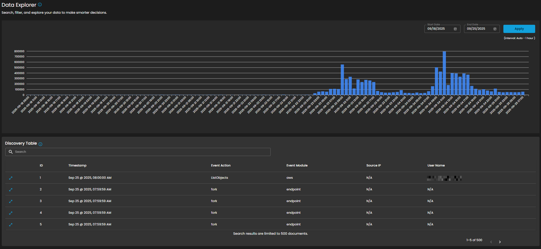 A real-time visualization to display system log generation frequency per second through a dynamic chart, enabling instant monitoring of system activity and resource utilization. Clicking on it will open up a small window that will show the detailed explanation.