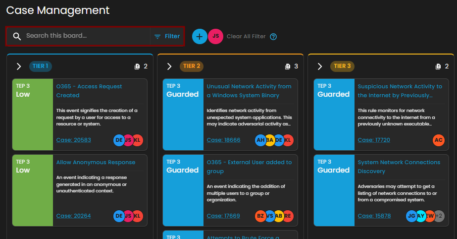 - Dashboard - Real-time view of alerts, cases, and overall security status.