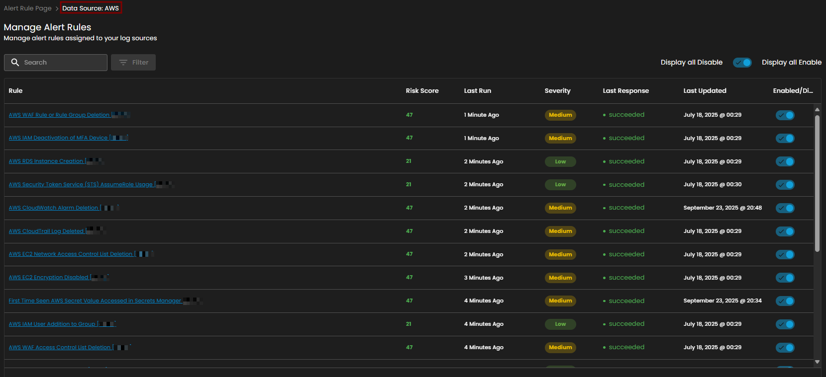 - Display All Disable: When enabled, this toggle ensures all disabled rules are displayed.