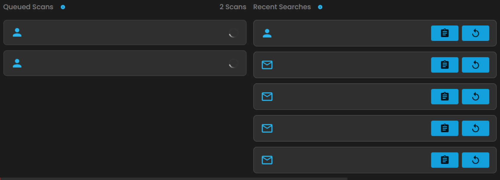 - Queued Scans and Recent Searches
