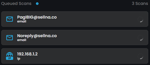 - Queued Scans: Displays a notification when no scans are in progress or if a new search has been initiated. It will show the progress once a scan starts.