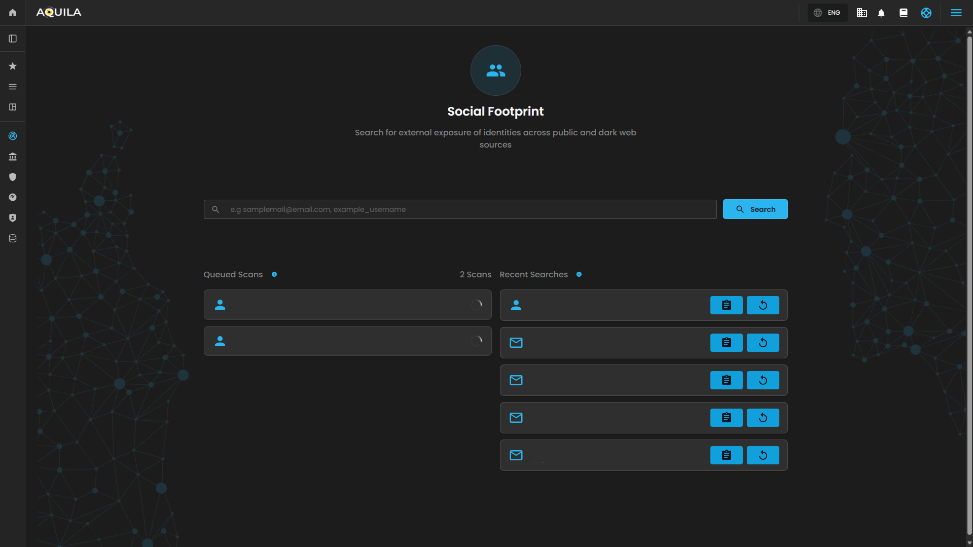 - This section shows the status of any scans that are queued but not yet started. If no scans are in progress, it will notify you to start a new search to begin scanning for exposure.