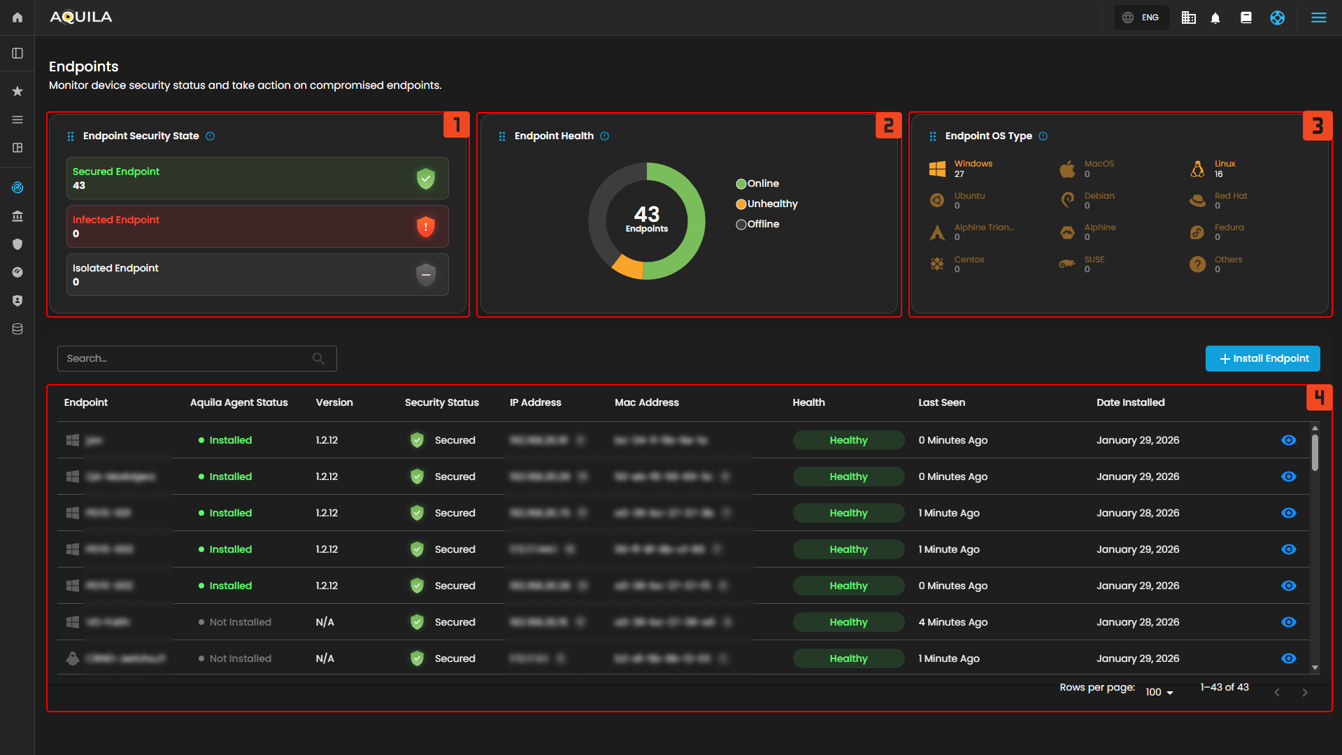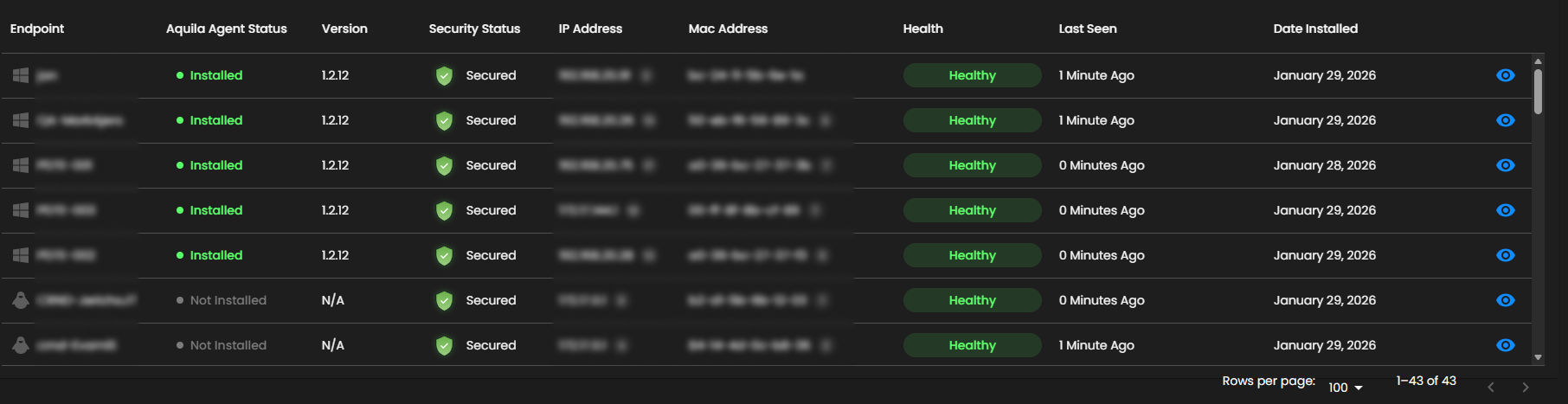 - This section displays a list of all endpoints currently in your network. Each endpoint entry shows the following details: