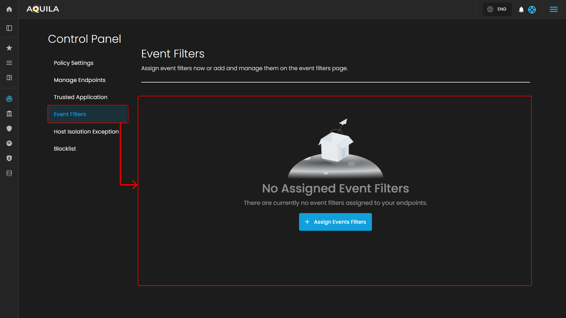- The Assign Events Filters Option allows you to easily configure and apply filters to events, helping you focus on specific types of activities or behaviors across your endpoints. This will enable you to narrow down the event logs to show only relevant information.