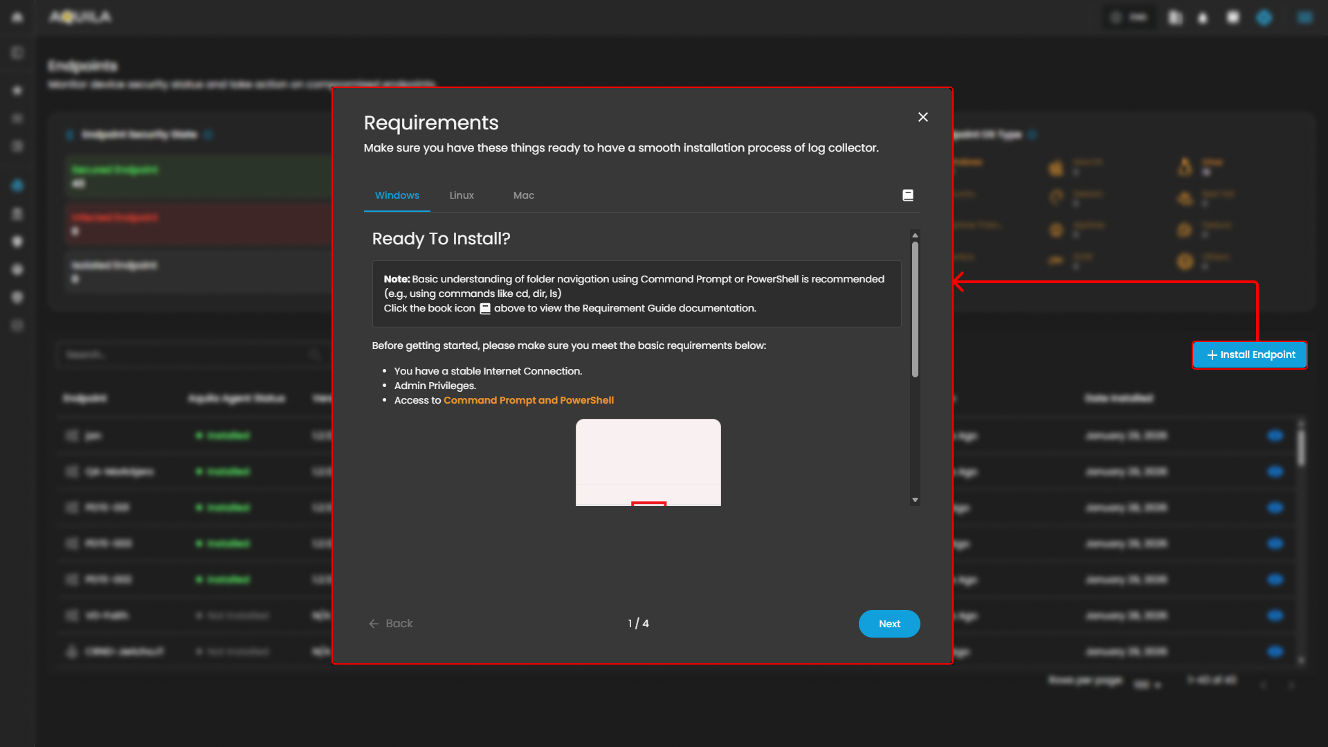 - Operating System: Displays the OS of the endpoint (e.g., Linux, Windows).