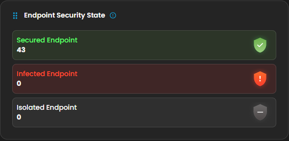 In the Endpoints Page, you can view a general summary of organization’s endpoint security status. This includes metrics such as secured, infected, and isolated endpoints. As of now, there are no infected or isolated endpoints in the system.