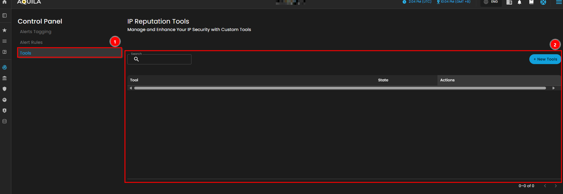 • New Tools button is available in the upper-right corner, allowing users to add new custom tools to the system. This provides an easy way to enhance IP security by integrating new tools.