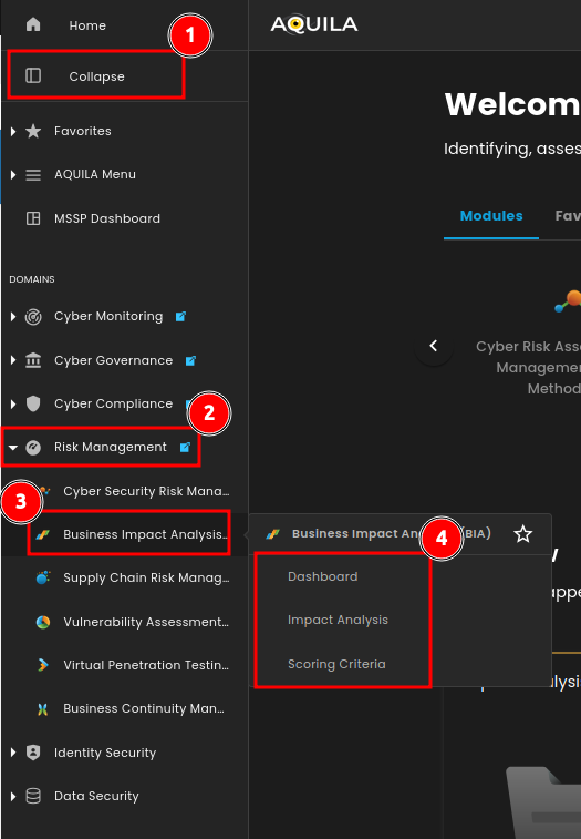 Step 4: Hover into leftmost panel to view all the Risk Management sections. This Process is applicable in all navigating into a Module.
