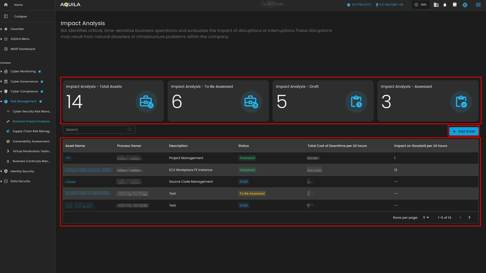 - These are the total assets that you have added in your Business Impact Analysis regardless of their status.