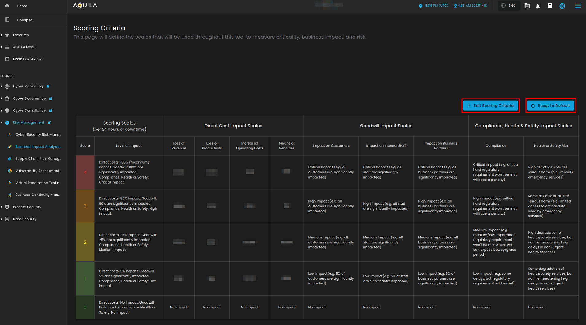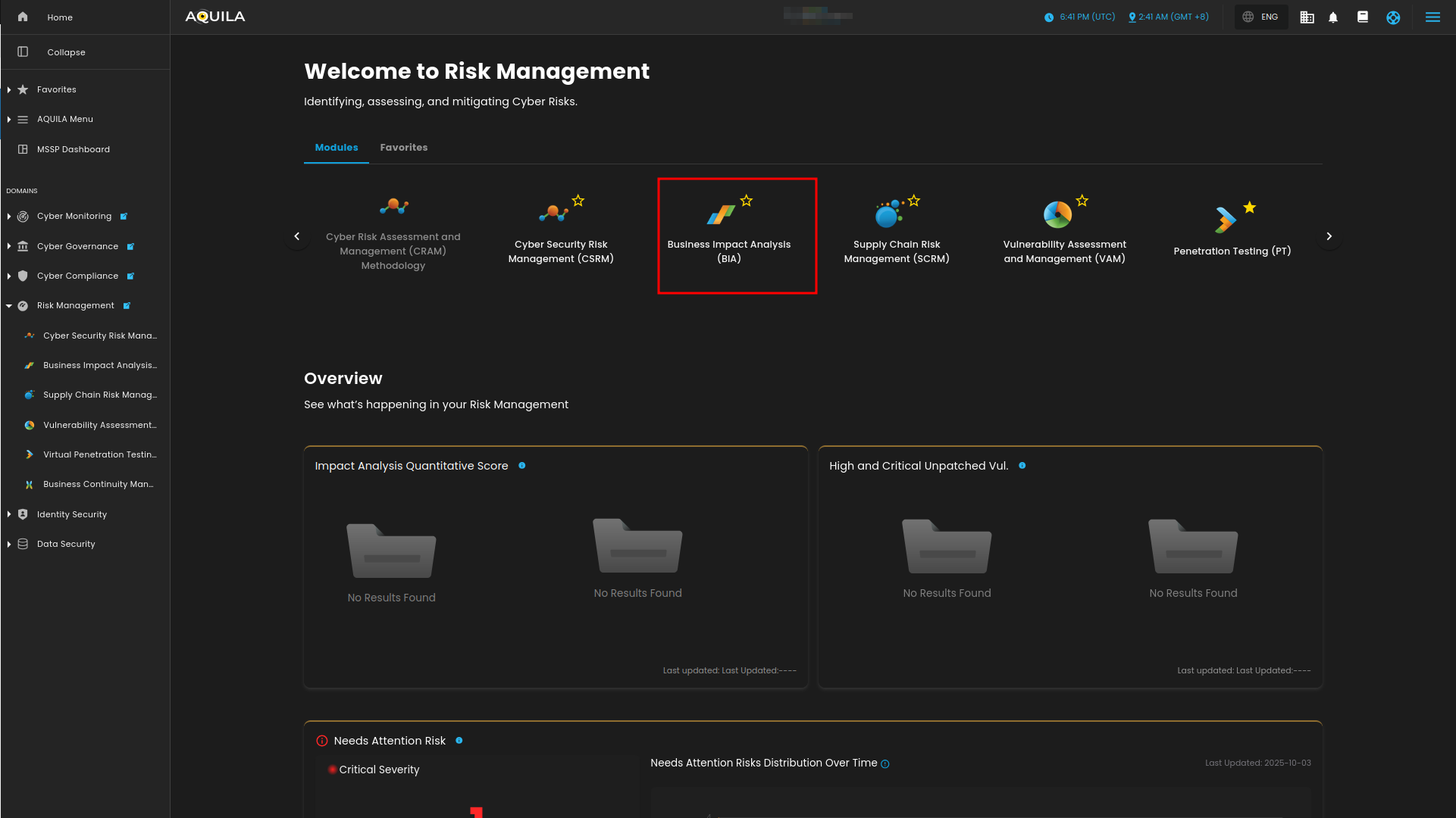 Figure 2. Business Impact Analysis (BIA) Dashboard
