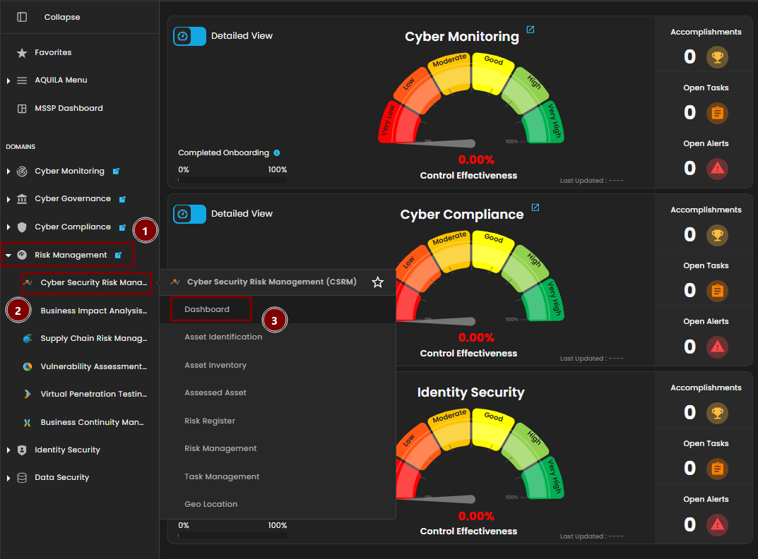 Step 2: In the left column click Risk Management -> Cyber Security Risk Management (CSRM) -> Dashboard