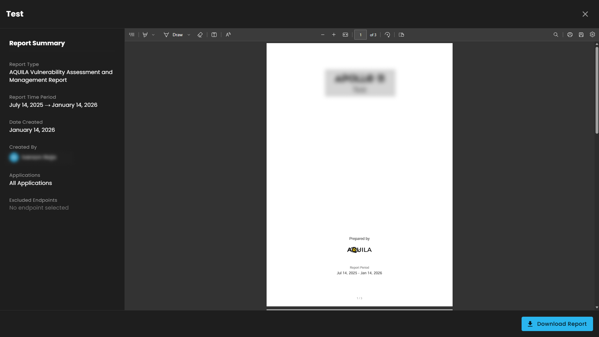 After pressing "Generate Report" and filling up the required information it will generate a report summary on the endpoints that are affected by the vulnerability and their CVE's that are related to the vulnerabilities. The client can also press "Download Report" to generate a pdf form of the report.