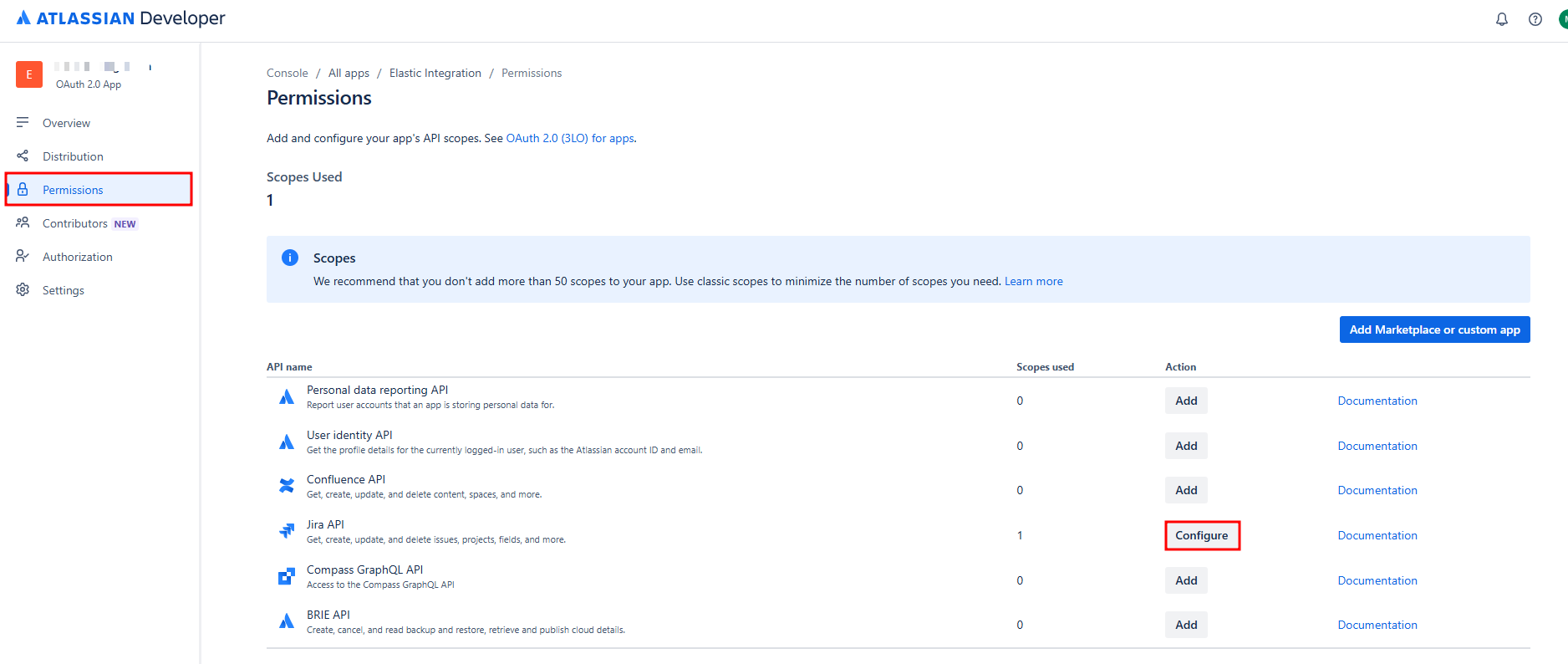 6. Next to OAuth 2.0 (3LO), select Configure or Add.