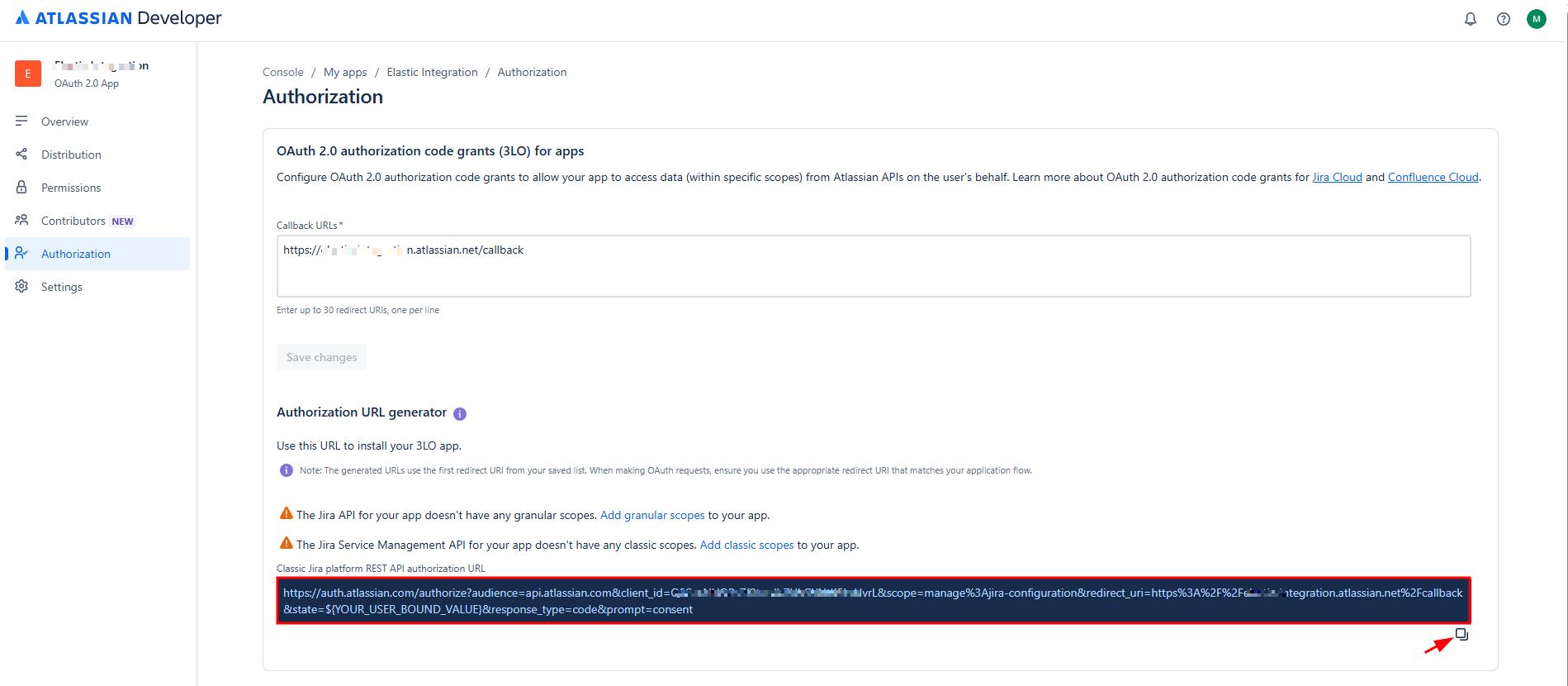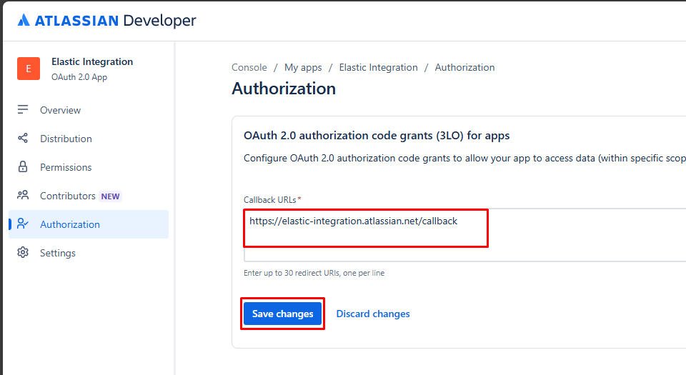 7. Enter the Callback URL. Set this to any URL that is accessible by the app. When you implement OAuth 2.0 (3LO) in your app (see next section),
