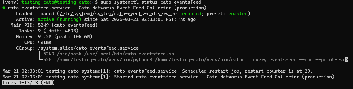 sudo systemctl status cato-eventsfeed