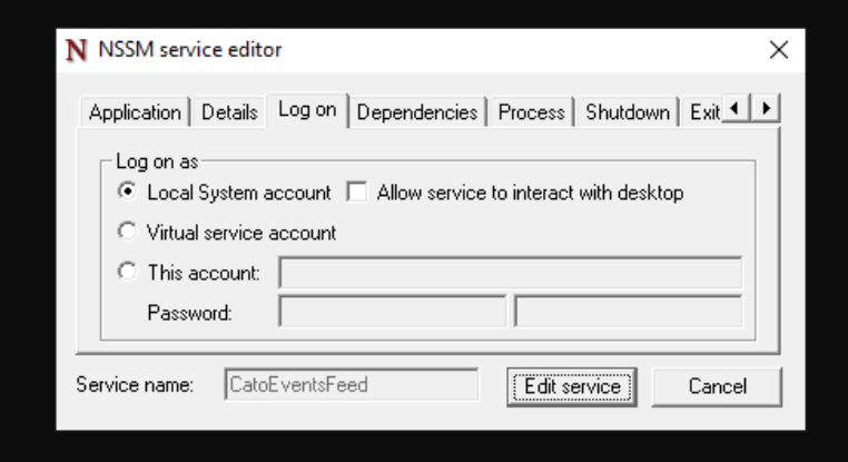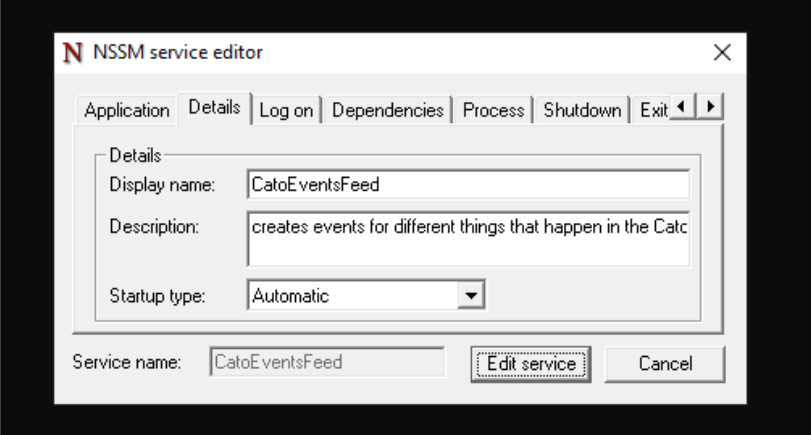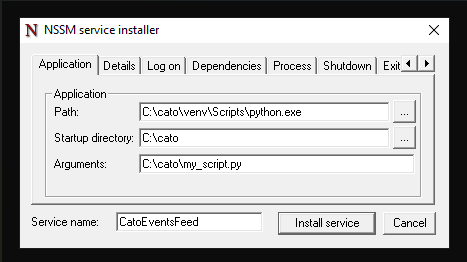 Step 3: Copy the appropriate `nssm.exe` file (32-bit or 64-bit based on your system) to the Cato integration directory: