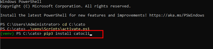 Step 1: Open PowerShell as Administrator and Navigate to the Cato directory: