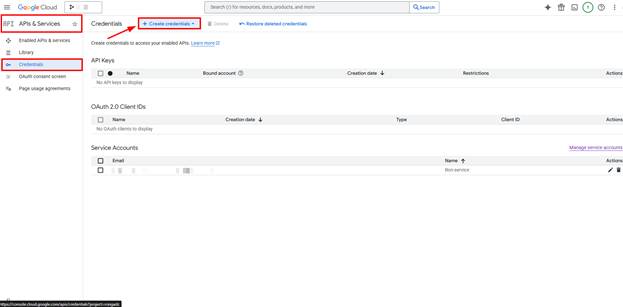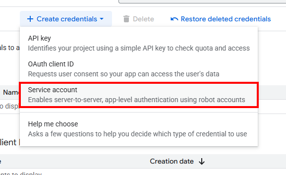 - Click Create Credentials > Service account.