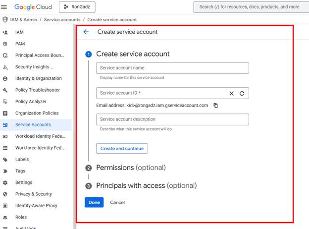 - Enter a name for the service account.