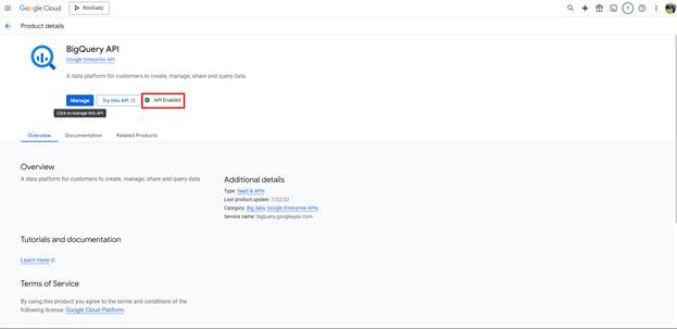 - Enable BigQuery API if not already