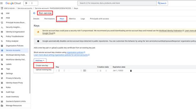 - Save the downloaded JSON key securely.
