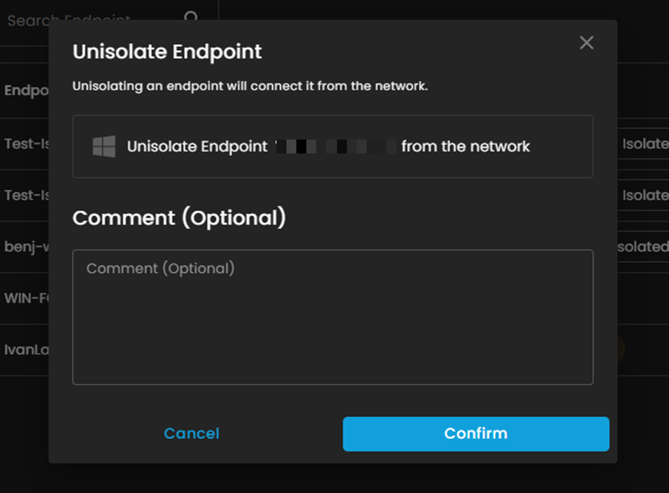 After refreshing, the endpoint action will go back to Isolate Host after releasing, meaning, the Unisolate is done.