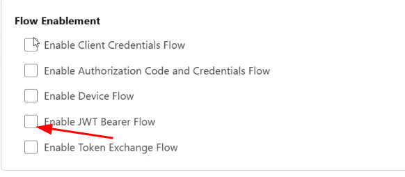 (Required for JWT) In the Flow Enablement section, select Enable JWT Bearer Flow.
